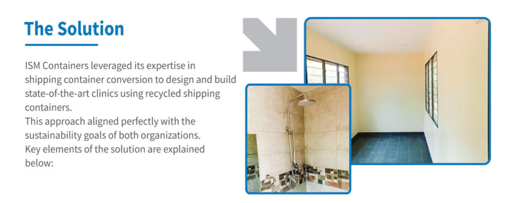 To ensure a reliable source of electricity in an area with inconsistent power supply, ISM Containers incorporated solar panels on the clinic roofs. This eco-friendly solution helped light up the clinics, reduce energy costs, and minimize the clinics\’ carbon footprint.